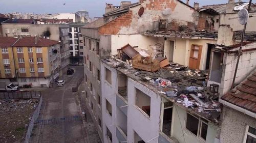 Zeytinburnu Yeşiltepe'de kentsel dönüşümdeki 4 katlı binanın çatısından kopan beton parçaları park halindeki 3 aracın üzerine düştü; can kaybı yok.