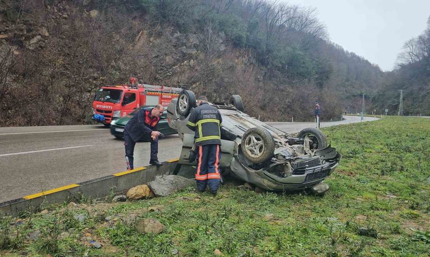 Zonguldak yönüne seyreden K.T. idaresindeki 67 EN 433 plakalı Fiat marka otomobil, kontrolden çıkarak refüje çarpıp takla attı.