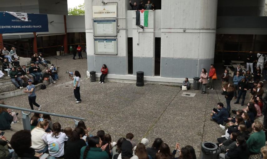 Paris'in 13. bölgesinde yer alan ve "Tolbiac" olarak bilinen Paris 1 Pantheon-Sorbonne Üniversitesi öğrencileri, İsrail'in Gazze'deki saldırılarına karşı kampüslerinde bir araya geldi. Filistin'e destek gösterisi düzenleyen öğrenciler, "soykırımın durması" çağrısında bulundu.
