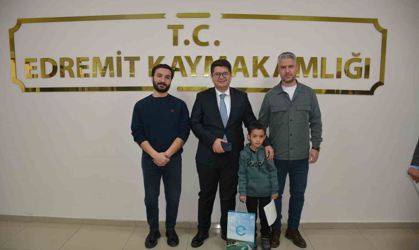 Edremit Kaymakamı Ömer Ahmet Özdemir de Tomay’ı makamında kabul ederek başarısını tebrik etti.