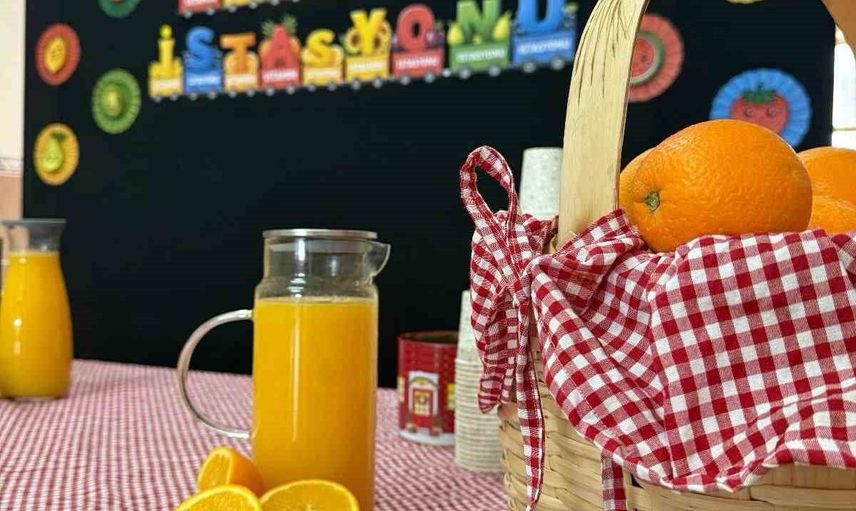 Okulda gerçekleştirilen etkinlikte, öğretmenler tarafından sıkılan taze portakal suları öğrencilere ikram edildi.