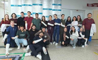 Balıkesir Üniversitesi Tıp Fakültesi 5.Sınıf öğrencileri, ortopedi stajı sırasında birbirlerinin kol ve bacaklarına alçı uyguladı.