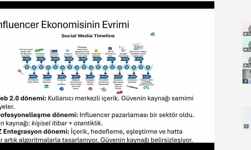 Akdeniz Üniversitesi Sosyal Bilimler Meslek Yüksekokulundan Doç. Dr. Yasemin Bilişli, "Yapay Zekâ Çağında Influencer Ekonomisi: Dijital Güvenin Anatomisi" başlıklı sunumunda influencer ekonomisinin evriminin yapay zekâ destekli içerik üretimiyle yaşadığı dönüşümü aktardı.