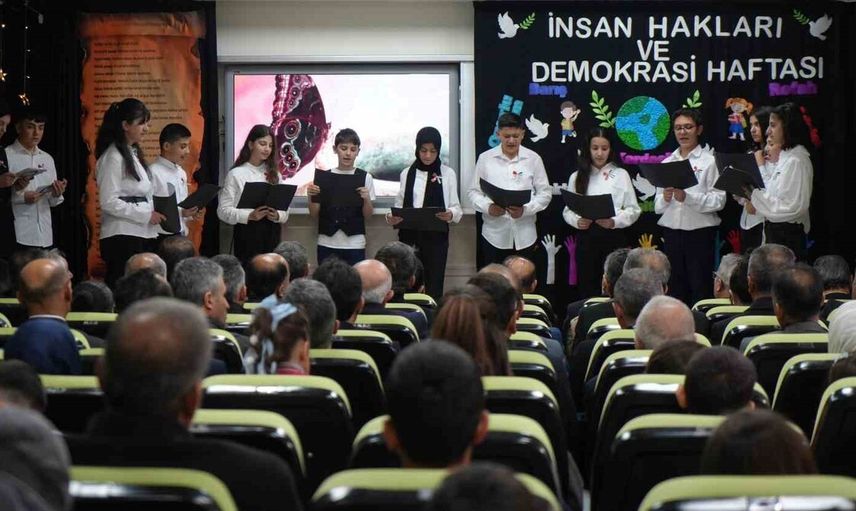 Bayburt'ta, İnsan Hakları ve Demokrasi Haftası kapsamında Şehit Sebahattin Bozo Ortaokulu tarafından düzenlenen programda Filistin ve Doğu Türkistan halklarının yaşadığı insan hakları ihlalleri ve çekilen sıkıntılara dikkat çekildi. Etkinlik davetliler tarafından ilgiyle takip edildi.
