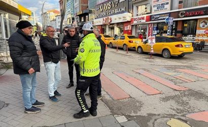 Uygulama kapsamında yayalara trafik kurallarını içeren broşürler dağıtıldı ve vatandaşlara güvenli geçişe ilişkin bilgilendirme yapıldı.