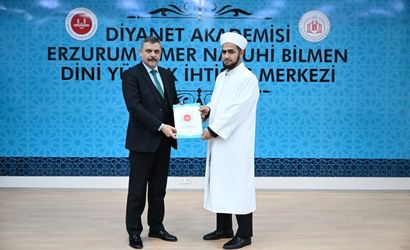 Erzurum’da Diyanet Akademisi bünyesinde düzenlenen 3. Dönem Mesleki Eğitim Programını başarıyla tamamlayan din görevlileri için mezuniyet töreni düzenlendi.