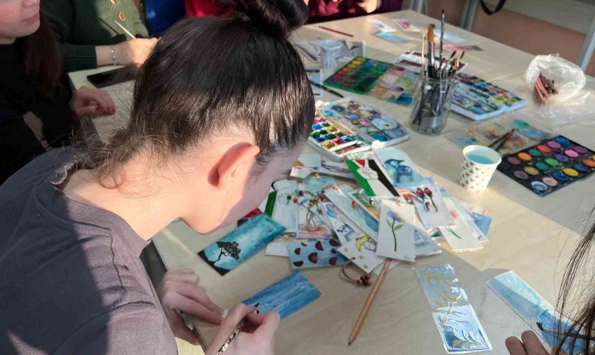 Sulu boya teknikleriyle yapılan özgün kitap ayraçları, öğrencilerin el becerilerini artırırken sosyal etkileşimlerini de güçlendirdi. Gençlik Merkezi, öğrenci topluluklarının sosyal ve kültürel gelişimlerine katkı sağlamak amacıyla benzer etkinlikleri düzenlemeye devam edeceğini bildirdi.