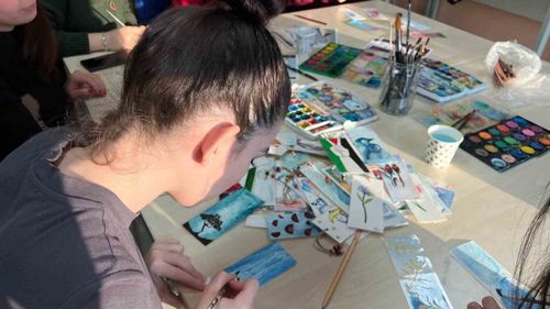 Düzce Üniversitesi öğrencileri, Gençlik Merkezi'nde düzenlenen sulu boya atölyesinde kendi kitap ayraçlarını tasarlayıp el becerilerini geliştirdi.