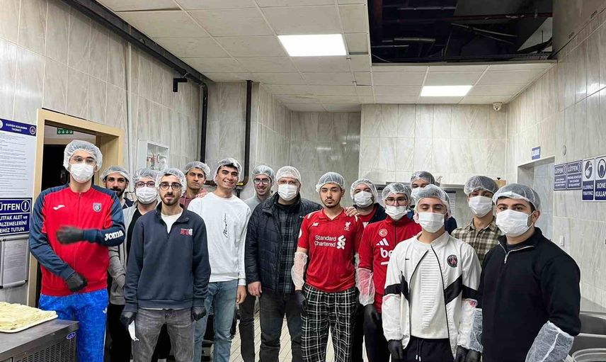 DÜZCE ÜNİVERSİTESİ OKUYAN VE YURTLARDA KALAN ÖĞRENCİLER ÖĞRETİCİ BİR ETKİNLİK YAPTI. KIZLAR KURABİYE YAPARKEN, ERKEKLER PİZZA YAPTI.
