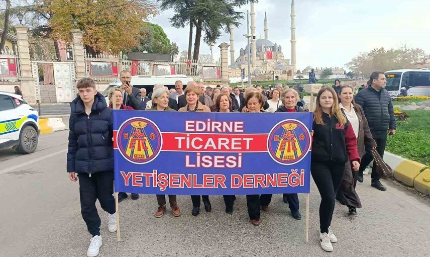 Edirne Ticaret Lisesi’nden Yetişenler Derneği üyeleri, okul öğrencilerinden oluşan bando takımı eşliğinde Selimiye çevresinde kortej yürüyüşü gerçekleştirdi. Okul mezunları, öğrenciler ve öğretmenlerin cadde boyu yürüyüşü çevredekilerce ilgiyle izlendi.