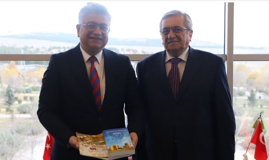 Emekli Müdür Ahmet Urfalı eserlerini Rektör Prof. Dr. Süleyman Kızıltoprak’a Takdim Etti