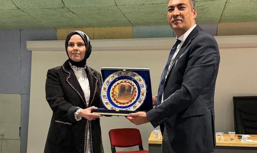 Etkinlik sonunda İlçe Milli Eğitim Müdürü Recep Aydın tarafından Demet Bakırdemir'e günün anısına plaket takdim edildi.