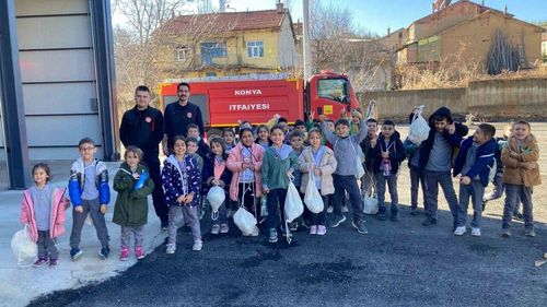 Konya Hüyük'te tüm 1. sınıf öğrencilerine İlçe Milli Eğitim, Konya İl Milli Eğitim ve Konya Büyükşehir Belediyesi iş birliğiyle "İtfaiye ve Yangın Güvenliği Eğitimi" verildi.