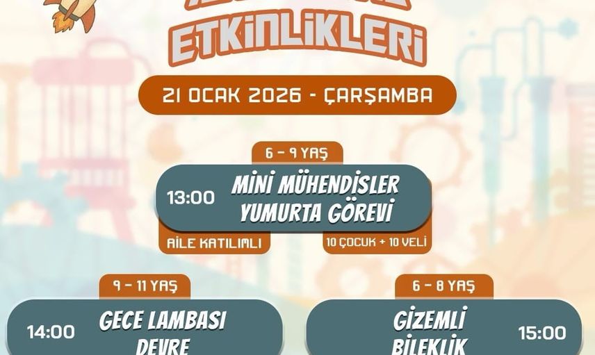 Program kapsamında gerçekleştirilecek atölye ve etkinlikler arasında Masaldan Tuvale Sanat Atölyesi, 3D Kalem, Arduino ile LED Yakma, Mini Mühendisler Yumurta Görevi, Gece Lambası Devre, Gizemli Bileklik, Ahşap Tasarım Atölyesi, Hama Boncuğu, Geometrik Robotum, Ekosanat Tasarım Atölyesi, Kağıt Devre ve Kahoot Yarışması gibi uygulamalı ve geliştirici faaliyetler bulunuyor.