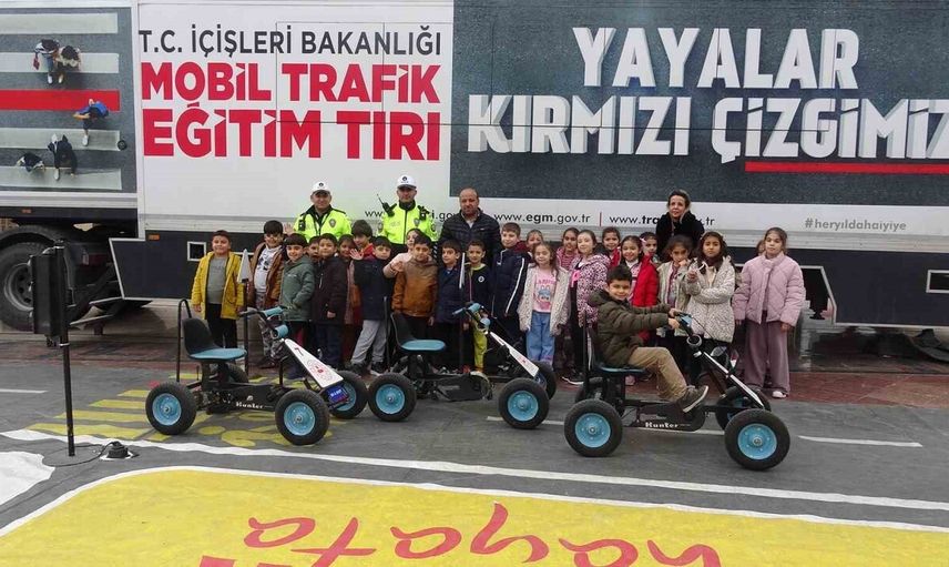 Kilis'te minik öğrenciler, trafik kurallarını hem teorik hem de pratik öğrenme fırsatı buldu. Cumhuriyet Meydanı'nda konuşlandırılan Mobil Trafik tırında çocuklara polis ekiplerince hem teorik eğitim hem de uygulamalı eğitim verildi.