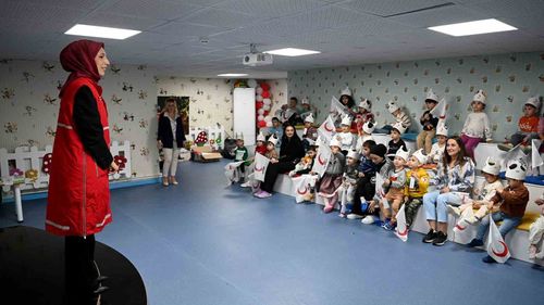 Kuşadası Çocuk Gelişim Merkezi'nde düzenlenen etkinlikte miniklere Kızılay'ın kuruluşu, ilkeleri ve kan bağışının önemi anlatıldı.