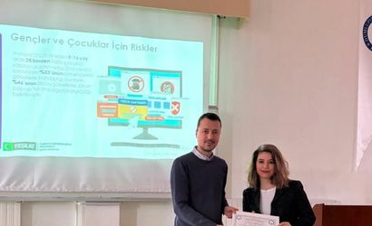 Eğitim sonunda katkılarından dolayı Sosyolog Merve Öğütçüye, Meslek Yüksekokulu Müdürü Öğr. Gör. Burak Kavaslar tarafından teşekkür belgesi takdim edildi.