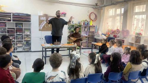 Manisa Akşemseddin Ortaokulu'nda 'Dilimizin Zenginlikleri' projesi kapsamında yazar Halil Kuru ile ana sınıfı öğrencilerinin buluştuğu, müzik ve kültürel tanıtımlarla zenginleşen etkinlik.