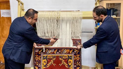 Muğla İlçe Millî Eğitim Müdürü Mehmet Keleş, Muğla Olgunlaşma Enstitüsü'nü ziyaret ederek geleneksel halının kesim törenine katıldı ve atölye çalışmalarını inceledi.
