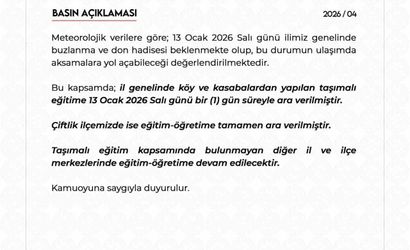 Yapılan basın açıklamasında, 13 Ocak 2026 Salı günü Niğde genelinde buzlanma ve don hadisesinin etkili olmasının beklendiği; bunun özellikle ulaşımda aksamalara yol açabileceği belirtildi.