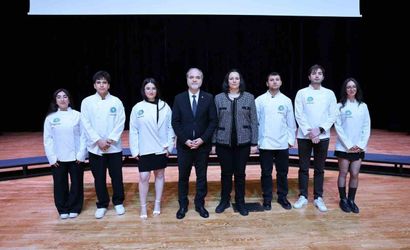 Şehit Ömer Halisdemir Kongre ve Kültür Merkezi’nde gerçekleştirilen törende, geleceğin aşçıları mesleğe ilk adımlarını simgeleyen beyaz önlüklerini giydi.
