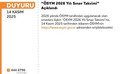Ölçme, Seçme ve Yerleştirme Merkezi (ÖSYM) 2026 sınav takvimini duyurdu. ÖSYM Başkanı Bayram Ali Ersoy, sosyal medya hesabından yaptığı paylaşımda takvime ilişkin detayları aktardı.