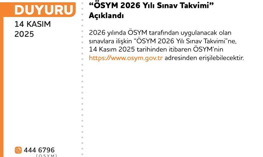 ÖLÇME, SEÇME VE YERLEŞTİRME MERKEZİ (ÖSYM) 2026 SINAV TAKVİMİNİ AÇIKLADI.