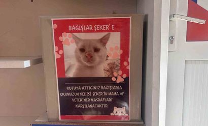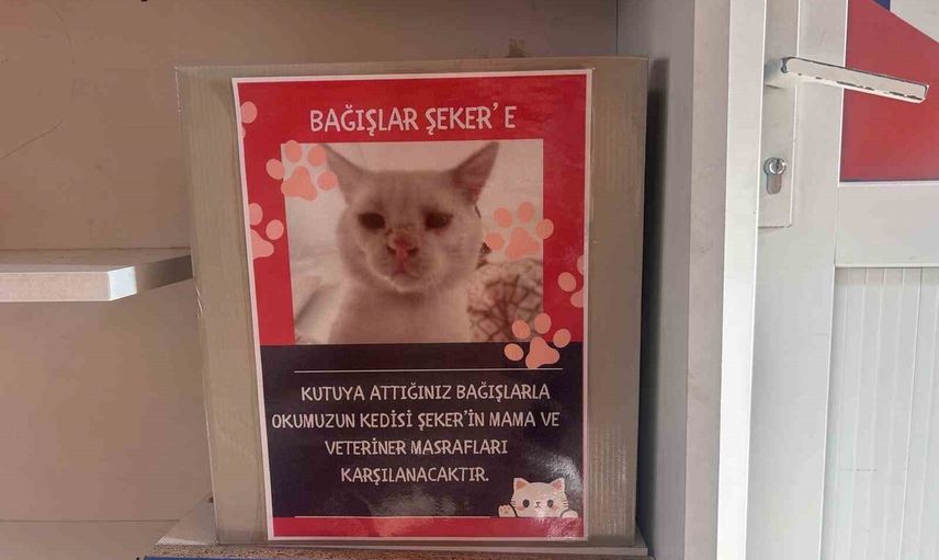 BİLECİK'İN BOZÜYÜK İLÇESİNDE BULUNAN SAFFET ŞEKER İLKOKULUNUN ÖĞRETMENLERİ VE ÖĞRENCİLERİ, MAHALLELERİNDE BULUNAN YAŞLI SOKAK KEDİSİNİ SAHİPLENİRKEN, OKULUN İSMİNDEN VE KEDİNİN RENGİNDEN ESİNLENEREK KEDİYE "ŞEKER" İSMİNİ VERDİLER.