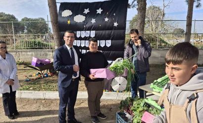 MANİSA'NIN SARIGÖL İLÇESİNDE ENGELLİLER GÜNÜ KAPSAMINDA DÜZENLENEN ETKİNLİKTE PROTOKOL ÜYELERİ, ÖZEL EĞİTİM ÖĞRENCİLERİYLE BİRLİKTE YETİŞTİRİLEN ÜRÜNLERİ HASAT EDİP, BİRLİKTE PASTA KESTİ.