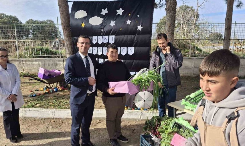 Hasat etkinliğinin ardından özel eğitim sınıfı öğrencileri, Kaymakam Halil Dalak, Belediye Başkanı Tahsin Akdeniz, İlçe Milli Eğitim Müdürü Cezmi Yıldırak ve özel eğitim öğretmenleri Emre Baştürk, Fazilet Tekeli, Ezgi Barut, Kadri Sağır ve Savaş Güvence ile birlikte pasta kesti.