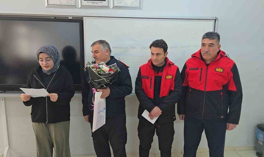 Sorgun Belediyesi İtfaiye Müdürlüğü ekipleri, geçtiğimiz hafta kendilerine mektup yazan lise öğrencisi Belinay Çakıcı'yı sürpriz bir ziyaretle sevindirdi. Ziyaret, Şehit Nusret Atmaca Kız Anadolu İmam Hatip Lisesi'nde gerçekleştirildi.