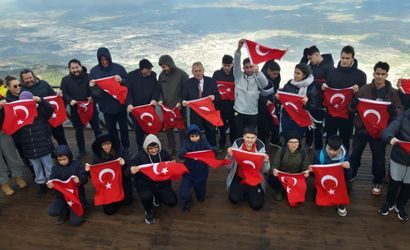 Spil'de Öğrenciler Zirvede Türk Bayrağı ve İstiklal Marşı Coşkusu