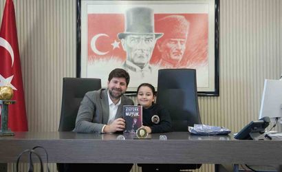 Başkan Boltaç, bu başarısı sayesinde Singapur'da gerçekleştirilecek finallere katılmaya hak kazanan Elif Eylül Kılıç'a 'Nutuk' kitabını hediye etti.