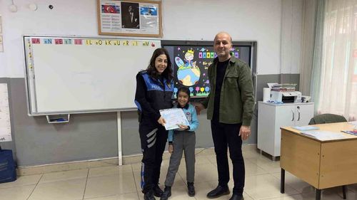 Tekirdağ İl Emniyet Müdürlüğü, Süleymanpaşa'daki Yunus Emre Ortaokulu ve Aydoğdu İlkokulu'nda karne törenlerine katılıp öğrencilere hediyeler vererek güvenlik eğitimi verdi.