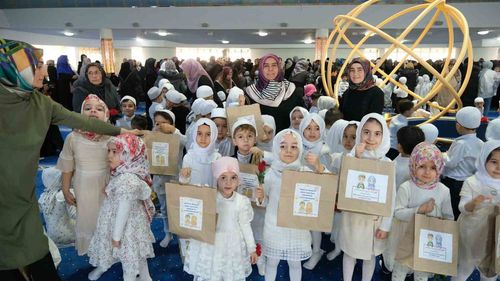 Terzibaba Camii'nde düzenlenen Üç Aylar Çocuk Şenliği'nde 4-6 yaş çocuklar Kur'an tilaveti, hediyeler ve balonlarla mübarek günleri neşeyle karşıladı.