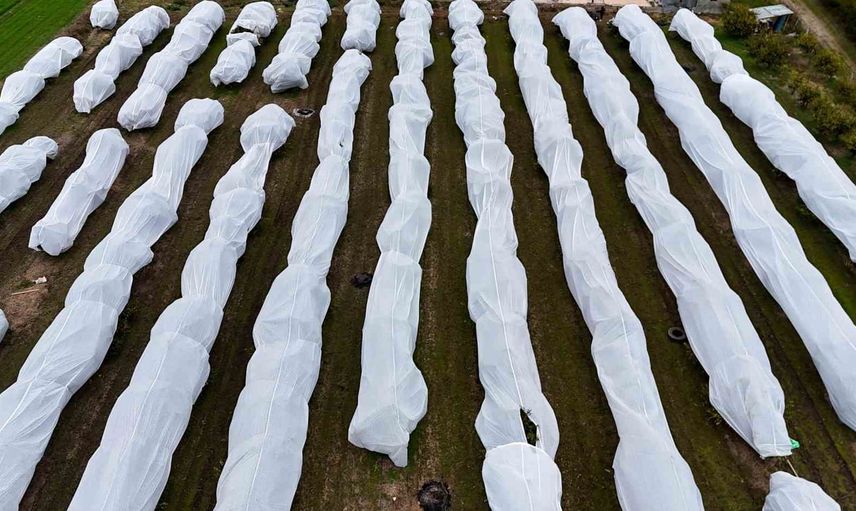 Adana'nın Yüreğir ilçesi Pekmezli Mahallesi'nde çiftçi Serkan Altınyüzük, zirai dondan korunmak amacıyla 15 dönüm limon ağacını fileyle örttü.