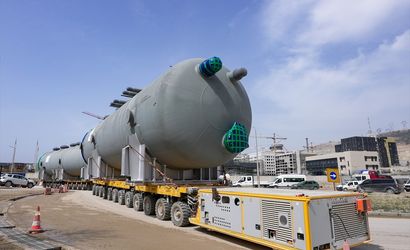 Mersin'de yapımı devam eden Akkuyu Nükleer Güç Santrali'nin (NGS) 3. güç ünitesine besleme suyu depolama tankı taşındı.