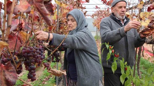 Amasya'da Feruziye Nine Serada Aralıkta da Üzüm Hasadı