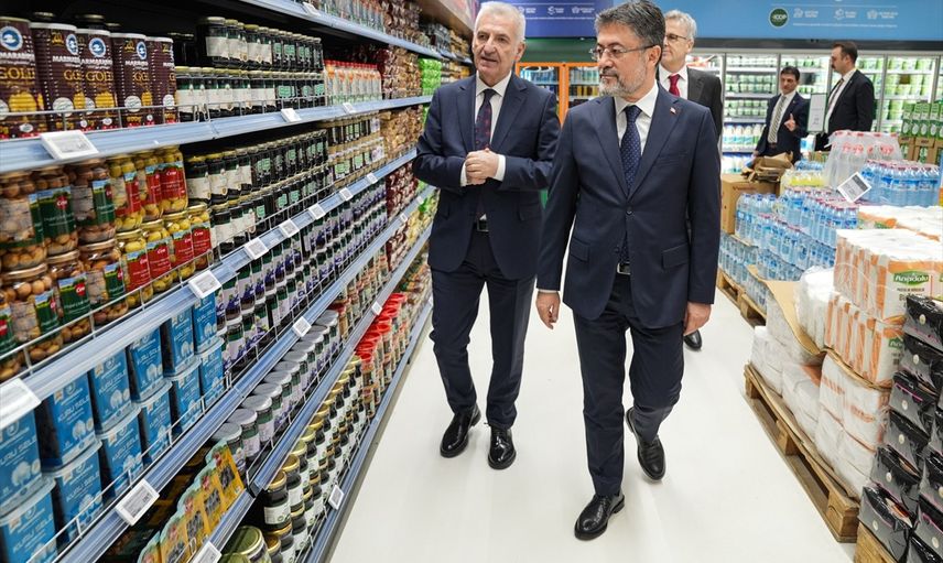 Tarım ve Orman Bakanı İbrahim Yumaklı (sağda), Kısıklı'daki Tarım Kredi Kooperatifi Marketi'ni ziyaret etti.
