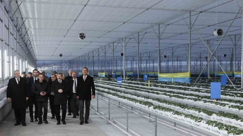 Samsun Valisi Orhan Tavlı, Bafra Sera OTB'de 48 bin metrekarelik tesiste ileri teknolojiyle yürütülen topraksız çilek üretimini inceledi.