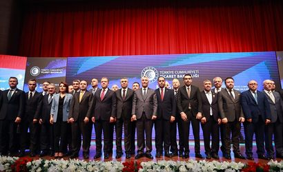 Mersin Ekonomi Zirvesi Sonuç Bildirgesi Toplantısı, Mersin Üniversitesi Akdeniz Kültür Merkezi'nde düzenlendi. Programa, Ticaret Bakanı Ömer Bolat (sol 5), Mersin Valisi Atilla Toros (sol 4), Mersin Büyükşehir Belediye Başkanı Vahap Seçer (sol 3), Mersin Ekonomi Platformu Başkanı Servet Özkaya (sağ 4), AK Parti Mersin Milletvekili Ali Kıratlı (sağ 3), CHP Mersin Milletvekili Gülcan Kış (sağ 2) ve DEVA Partisi Mersin Milletvekili Mehmet Emin Ekmen (sağda) de katıldı.