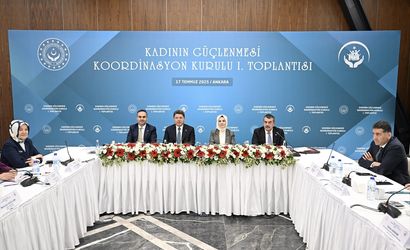 Kadının Güçlenmesi Koordinasyon Kurulu 1. Toplantısı, Aile ve Sosyal Hizmetler Bakanı Mahinur Özdemir Göktaş (sağ 3), Adalet Bakanı Yılmaz Tunç (sol 3), Sanayi ve Teknoloji Bakanı Mehmet Fatih Kacır (sol 2) ve Milli Eğitim Bakanı Yusuf Tekin'in (sağ 2) katılımı ile Ankara Hakimevi'nde gerçekleştirildi.