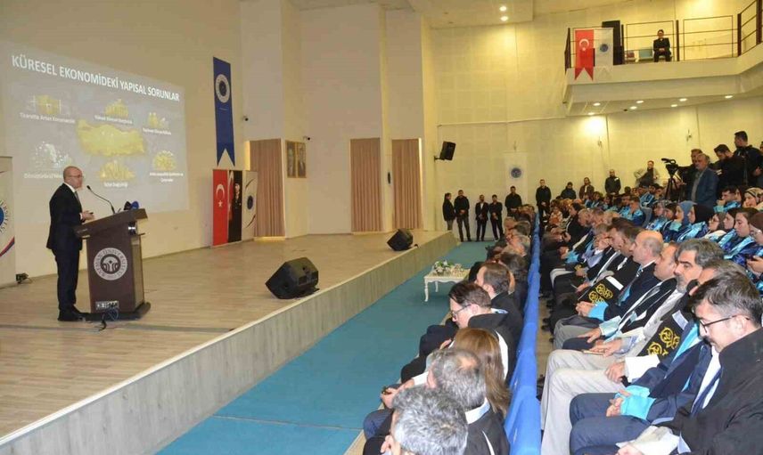 Hazine ve Maliye Bakanı Mehmet Şimşek, Batman Üniversitesi Batı Raman Kampüsü’nde düzenlenen "Küresel Meydan Okumalar ve Türkiye" konulu konferansta bölgeye ilişkin değerlendirmelerde bulundu.