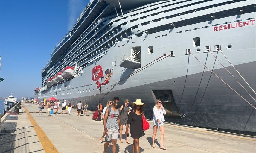 Bahamalar bayraklı "Resilient Lady" kruvaziyeri, 2 bin 600 yolcusuyla Muğla'nın Bodrum ilçesine yanaştırıldı. Gemiden inen turistler, gümrük işlemlerinin ardından limandan ayrıldı.