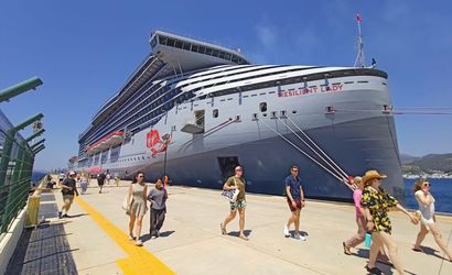 Uluslararası denizcilikte önemli bir yere sahip olan Resilient Lady kruvaziyeri, 2.606 yolcusuyla birlikte Muğla'nın gözde tatil beldesi Bodrum'a demirledi.