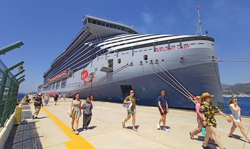 Bahamalar bayraklı "Resilient Lady" kruvaziyeri, 2 bin 606 yolcusuyla Muğla'nın Bodrum ilçesine demirledi.