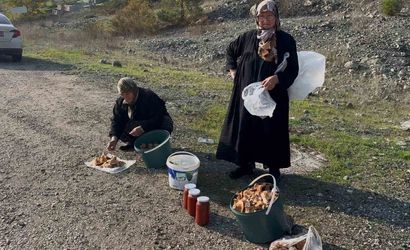 Bursa’da sabah erken saatlerde evlerinden çıkarak ormanlık alanda mantar toplayan 70 yaşlarındaki Zekiye Yılmaz ve Huriye Saka, topladıkları mantarları yol kenarında satarak aile bütçelerine destek oluyor.