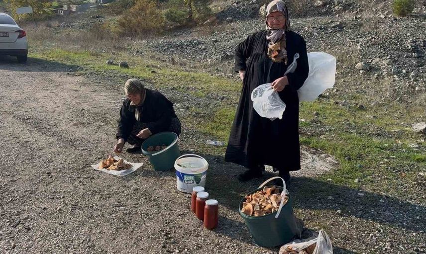Bursa'da 70 yaşındaki iki kadın kilometrelerce yürüyüp melki mantarı satıyor