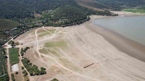 Bursa'nın Gölbaşı göleti, tabanındaki 14 metreye varan rüsubat ve bu yılki kuraklık nedeniyle su tutma kapasitesini kaybediyor; çiftçiler endişeli.