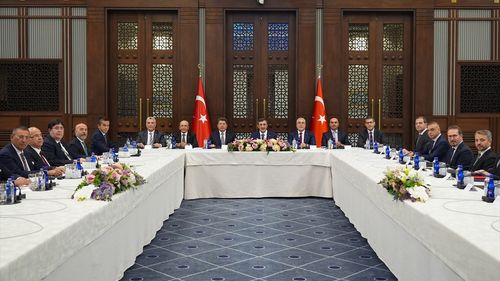 Cumhurbaşkanı Yardımcısı Cevdet Yılmaz, TİSK yönetimiyle 2026-2028 OVP hazırlıklarını görüştü; toplantıya bakanlar da katıldı.